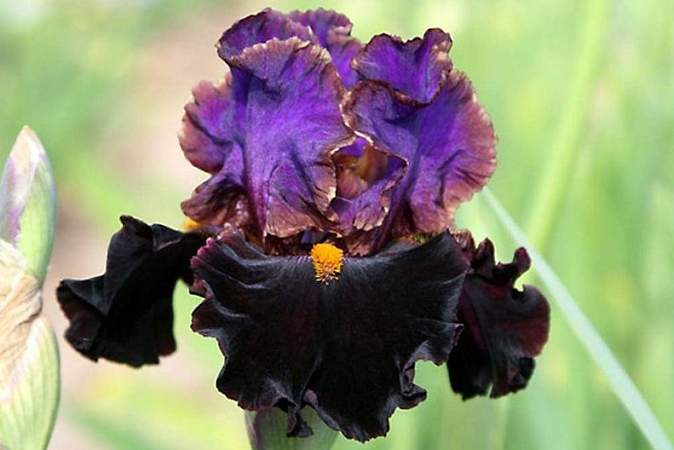 У бородатых ирисов толстое многолетнее корневище располагается горизонтально вровень с почвой, от него отходят длинные шнуровидные корни, образующие мочковатую корневую систему. Мечевидные листья, покрытые сизым восковым налетом, сложены веером. Вырастив такого метрового красавца вблизи дома или дорожки, вы подарите себе ни с чем несравнимое удовольствие наблюдать за рождением цветка, изменением его очертаний и оттенков по мере взросления.