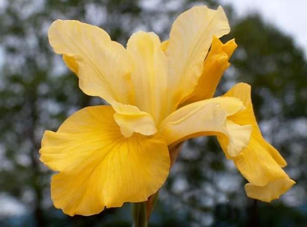 Ирис сибирский Kiss The Girl (Кисс Зе Гёл). Стандарты светло-жёлтые. Стайлы бледно-жёлтые с более тёмными кончиками и центральной жилкой. Фолы ярко-жёлтые. Аромат лёгкий сладкий. Цветение в июне. Высота 70 см.