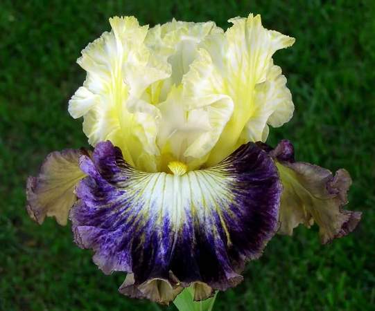 Ирис высокий бородатый Cold Fusion (Колд Фьюжн). Стандарты белые с яркими желтыми мазками по центральной жилке. Фолы белые с желтыми прожилками и широкой ярко-фиолетовой каймой. Бородка желтая. Красивый, хорошо гофрированный, эффектный сорт! Высота 86 см.