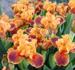 Ирис карликовый Color Blind (Колор Блайнд). Стандарты абрикосовые. Фолы темно-бордовые с каймой цвета стандартов. Плечики абрикосовые. Бородка оранжевая. Высота 25 см. Срок цветения поздний. Очень эффектный.