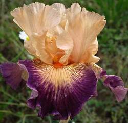 Ирис высокий бородатый Coral Cove (Корал Коув). Стандарты светло-персиковые, фолы чуть темнее с широкой сливовой каймой. Бородка оранжевая. Срок цветения средне-поздний. Высота 91 см.