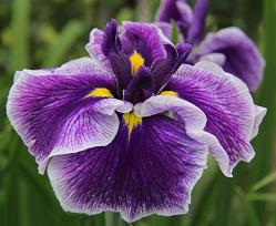 Ирис японский Crystal Halo (Кристал Хейлоу). Цветки фиолетовые с белой каймой по краям лепестка, очень крупные, до 20 см.