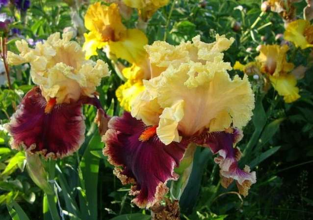 Первыми в списке садовых фаворитов смело можно поставить бородатые ирисы, их главная отличительная особенность — пушистая полоска, расположенная вдоль центральной жилки наружных, а иногда и внутренних лепестков цветка.