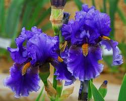 Ирис Deep Dark Secret (Дип Дарк Сикрит). Таинственный и красивый! Цветки средних размеров, с приятной гофрировкой и восковым блеском. Стандарты чернильно-тёмно-фиолетово-синие, бледнеющие по краям. Фолы чернильно-тёмно-фиолетово-синие со светло-фиолетовыми краями и тёмно-сливово-коричневые на основаниях. Бородка длинная, яркая золотисто-жёлтая. Аромат ярко выраженный, сладкий. Срок цветения средний. Высота 80 см.