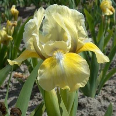 Ирис Doll Dear (Долл Диэ). Цветок желтый, бородка голубая. Красивый контраст. Очень свежий цвет. Украшение сада!