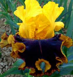 Ирис высокий бородатый Early Encounter (Эрли Энкаунтер). Шикарный, богатый сорт. Срок цветения самый ранний. Стандарты золотисто-желтые. Фолы черные с оттенком бургунди. Кайма золотисто-желтая. Бородка золотистая. Богато гофрирован. Срок цветения самый ранний. Высота до 97 см.