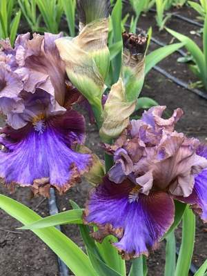 У бородатых ирисов толстое многолетнее корневище располагается горизонтально вровень с почвой, от него отходят длинные шнуровидные корни, образующие мочковатую корневую систему. Мечевидные листья, покрытые сизым восковым налетом, сложены веером. Вырастив такого метрового красавца вблизи дома или дорожки, вы подарите себе ни с чем несравнимое удовольствие наблюдать за рождением цветка, изменением его очертаний и оттенков по мере взросления.