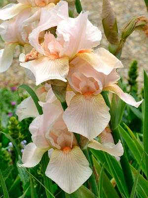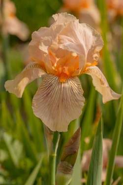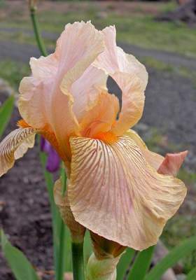 Ирис бородатый Edward of Windsor (Эдвард оф Виндзор). Цветок очень красивой формы, розовато-оранжевый, бородка ярко-оранжевая, на фолах серебристо-серый рисунок. Высота 80 см.