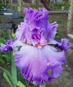 Ирис Excuse Me Darling (Экскьюз Ми Дарлинг). Цветок очень красивой формы, с восхитительной гофрировкой. Стандарты лилово-сиреневые, фолы такие же с выбеленным основанием. Бородка ярко-оранжевая. Срок цветения средне-ранний. Высота 86 см.