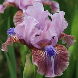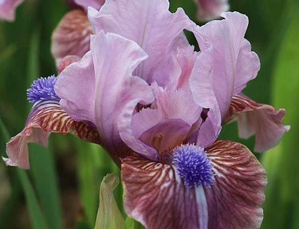 Ирис бородатый карликовый Fab Life (Фэб Лайф). Ирис с экзотическим обликом. Окраска стандартов сочетает голубой и темно-розовый цвета, по краю лавандовая кайма. Фолы лавандовые с розовым напылением и четкими коричневыми жилками. Кайма лавандовая. Бородка крупная, трехцветная. Срок цветения средний. Высота 38 см.