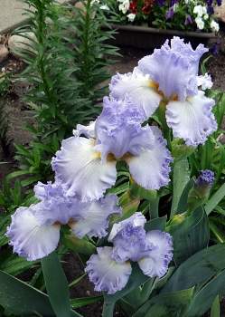 Ирис высокий бородатый Fancy Stuff (Фэнси Стафф). Необычайно красивый, с пузырчатой гофрировкой, кружевной! Окраска лавандово-голубая, бородка ярко-желтая с белым окончанием. Срок цветения средний. Высота 76 см. Имеет награды.