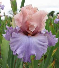 Ирис высокий бородатый Fashionista (Фэшиониста). Стандарты кораллово-розовые. Фолы светло-лавандовые, у основания розовые. Бородка оранжевая. Очень красиво гофрирован, широкий, кружевной. Срок цветения средне-поздний. Высота 89 см. Имеет награды.