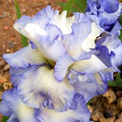 Ирис Fluffy Pillows (Флаффи Пиллоу). Оригинальный плоский цветок с развёрнутыми стандартами, создающий впечатление японского ириса. Необычная для такой формы белая с голубоватыми краями окраска, бородки желтые. Ощущение, что перед вами огромный махровый японский ирис совершенно потрясающего цвета! Имеет награды.