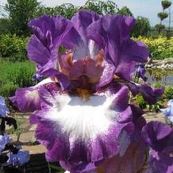 Ирис Footloose (Футлуз). Самый ранний высокий бородатый ирис. Начинает цвести в конце мая! Высокие мощные цветоносы (100 см). Продолжительное цветение. Цветки устойчивы к непогоде. Розово-пурпурный с большим белоснежным пятном на нижних лепестках, бородка желтая. Лепестки широкие, гофрированные.