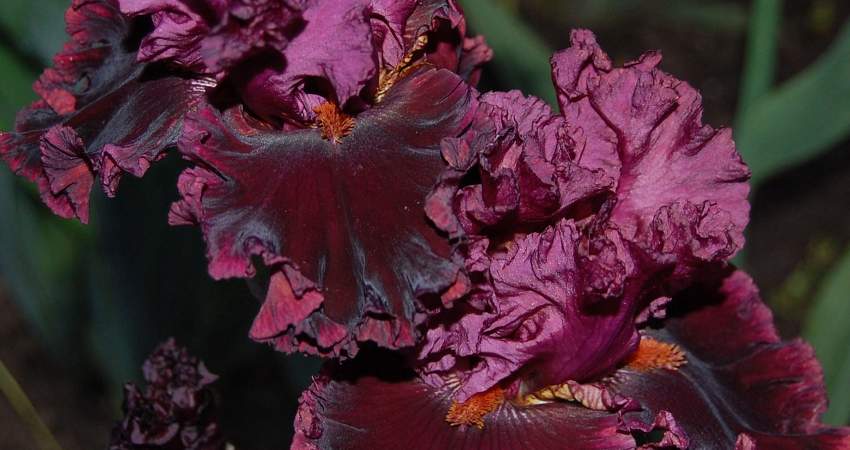 Ирис высокий бородатый Foreigner (Форинер). Стандарты свекольные с темно-красным вливанием. Фолы темнее с тонкой кромкой. бородка коричневая. Красивая гофрировка. Срок цветения средний. Высота 114 см. Имеет награды.