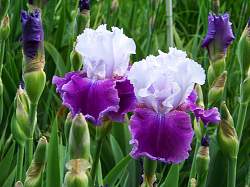 Ирис бородатый Gay Parasol (Гэй Парасол). Нарядно одетый, праздничный ирис. Стандарты слегка лавандовые, фолы фиолетовые. Бородка сиреневая. Легкий в ходе, хорошо разрастается.
