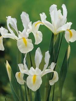 Ирис голландский Cream Beauty (Крим Бьюти). Гибридная форма, которая характеризуется неприхотливостью и длительным цветением. Сорт формирует некрупные белые цветы с ярко-жёлтым глазком. Растения прекрасно смотрятся, высаженные группами на газоне или в сборном цветнике, вперемежку с лилейниками, маргаритками, седумом, хостой, тюльпанами, нарциссами. Высота ириса 60 см. Цветение начинается в мае, цветам не страшны кратковременные заморозки. Отцветает ирис в конце июля.