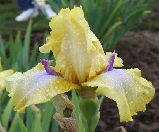 У бородатых ирисов толстое многолетнее корневище располагается горизонтально вровень с почвой, от него отходят длинные шнуровидные корни, образующие мочковатую корневую систему. Мечевидные листья, покрытые сизым восковым налетом, сложены веером. Вырастив такого метрового красавца вблизи дома или дорожки, вы подарите себе ни с чем несравнимое удовольствие наблюдать за рождением цветка, изменением его очертаний и оттенков по мере взросления.