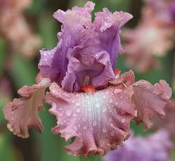 Ирис высокий бородатый How Wonderful (Хау Вандефул). Стандарты — бленд фиолетового, розового и лососевого. Фолы лососево-розовые с высветлением у бородки. Бородка ярко-оранжевая. Красивейший! Гофрированный и кружевной. Срок цветения ранний. Высота 86 см.