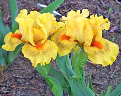 Ирис карликовый Clever (Клэве). Цветок крупный, округлый, лепестки с гофрировкой. Цвет золотисто-желтый, вокруг оранжевой бородки бордовая штриховка. Цветок нарядный. Цветение обильное в ранние сроки.