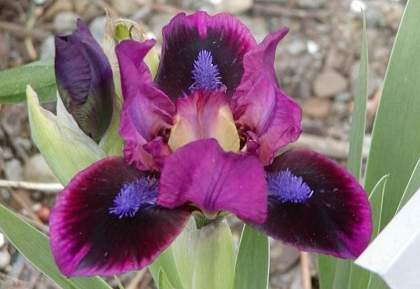 Ирис карликовый Pumping Iron (Пампинг Айрон). Яркий, богатый по окраске ирис. Фолы бархатистые иссиня-пурпурные, к краю темно-лиловые. Бородка фиолетовая. Высота 25 см. Разрастается хорошо, в цветнике смотрится выигрышно. Зимостойкость высокая.