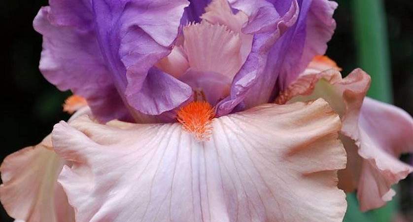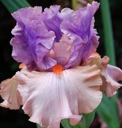 Ирис высокий бородатый La Scala (Ла Скала). Стандарты розовато-лавандовые, сероватые с фиолетовыми вливаниями. Фолы персиковые. Плечики кремово-персиковые. Бородка алая. Красивая окраска и прекрасная гофрировка! Срок цветения средне-ранний. Высота 94 см. Имеет награды.