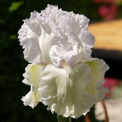 Ирис Laced Cotton (Лэйсд Коттон). Ирис с удивительной окраской. Из сердца цветка веет лавандовым цветом. Стандарты чуть заметно холодно-сиреневые, фолы подернуты лаймовой дымкой. Бородка белая с золотистой "пыльцой". Великолепная гофрировка!