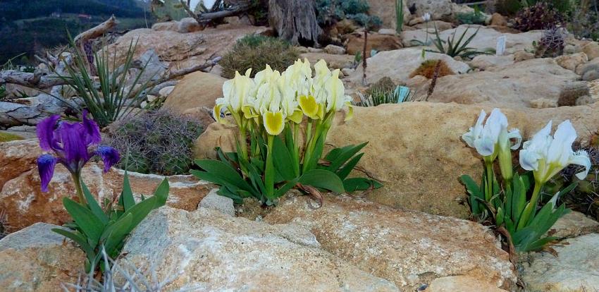 Камни - лучший фон для карликовых ирисов, особенно для ярких сортов.