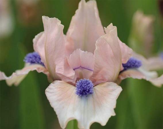 Ирис карликовый Magic Splash (Мэджик Сплэш). Стандарты розовые. Фолы белые с розовой кромкой и розовыми плечиками. Бородка большая ярко-синяя — очень контрастный всплеск цвета! Срок цветения поздний. Высота 25 см.