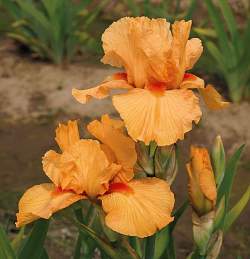 Ирис бородатый Maid of Orange (Мэйд оф Оранж). Яркий и легкий в выращивании сорт. Цветки светло-оранжевые, бородка темно-оранжевая. Высота 60 см. Ранний.