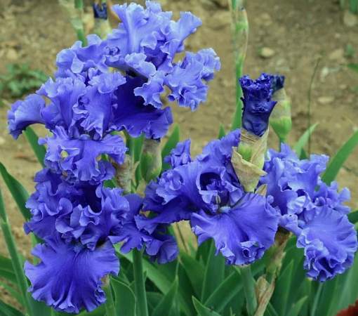 У бородатых ирисов толстое многолетнее корневище располагается горизонтально вровень с почвой, от него отходят длинные шнуровидные корни, образующие мочковатую корневую систему. Мечевидные листья, покрытые сизым восковым налетом, сложены веером. Вырастив такого метрового красавца вблизи дома или дорожки, вы подарите себе ни с чем несравнимое удовольствие наблюдать за рождением цветка, изменением его очертаний и оттенков по мере взросления.