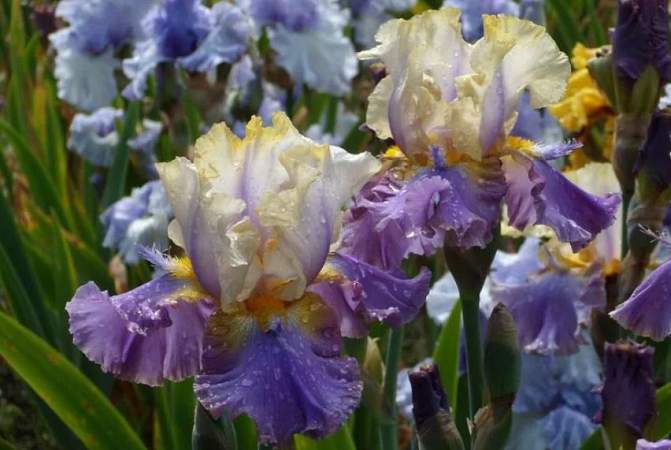 Куст ириса может дать 10-15 цветоносов, на каждом из которых одновременно бывает раскрыто до 25 цветков. Особый интерес коллекция ирисов представляет для ценителей ароматов, ведь разнообразие запахов у разных сортов бородатых ирисов ничуть не меньше, чем диапазон окрасок и форм.
