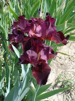 У бородатых ирисов толстое многолетнее корневище располагается горизонтально вровень с почвой, от него отходят длинные шнуровидные корни, образующие мочковатую корневую систему. Мечевидные листья, покрытые сизым восковым налетом, сложены веером. Вырастив такого метрового красавца вблизи дома или дорожки, вы подарите себе ни с чем несравнимое удовольствие наблюдать за рождением цветка, изменением его очертаний и оттенков по мере взросления.