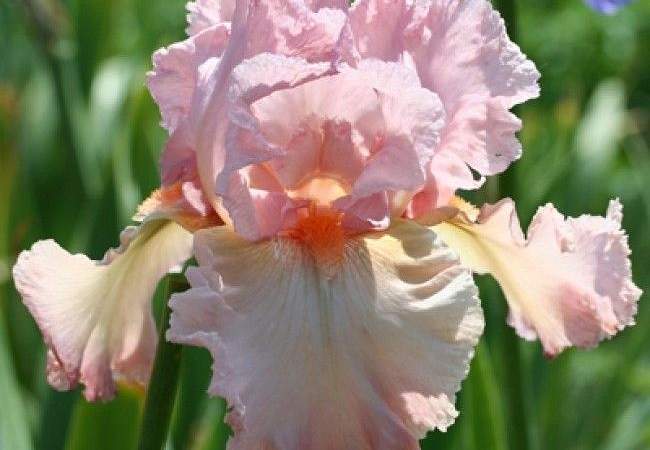 Ирис My Valentine (Май Валентайн). Стандарты розовые, фолы белые с широкой розовой каймой. Плечики желто-зеленые. Бородка оранжевая. Красиво гофрирован. Высота 80 см.