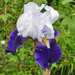 Ирис Night Edition (Найт Эдишн). Стандарты белые с голубыми штрихами. Фолы темно-синие. Бородка желтая. Яркий глубокий контраст. Очень украшает сад! Высота 90 см.