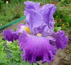 Ирис высокий бородатый Our House (Ауэ Хаус). Цветок крупный, лиловый с розовинкой. Бородка оранжевая. Красивейшая пузырчатая гофрировка, кружевной. Срок цветения средний. Высота 91 см. Неприхотлив, красавец!