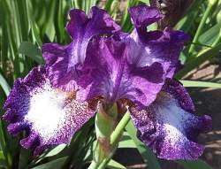 Ирис бородатый Prince of Burgundy (Принц оф Бургунди). Среднерослый бородатый ирис. Темно-винный цветок с фолами с крапчатым узором винного цвета вокруг белого поля. Очень эффектен в массивах. Отлично разрастается, неприхотлив.