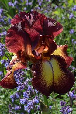 Ирис Provencal (Провенсаль). Цветки классической формы. Стандарты красно-бордовые, фолы с большим жёлтым центром и широкой красно-бордовой каймой. Цветение обильное. Зарегистрированный в 1978 году, он до сих пор остаётся очень популярным ирисом. Высота растения 85 см. Аромат цветущего апельсина. Цветение май-июнь.