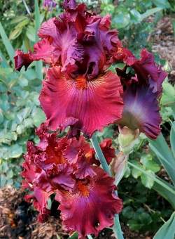 Ирис высокий бородатый Ready For My Closeup (Реди Фо Май Клоузап). Стандарты рубиновые, фолы от оранжевого до клюквенного с фуксиновыми и бордовыми переливами. Бородка оранжевая. Потрясающая окраска и великолепная форма цветка. Богатая гофрировка. Высота 89 см.