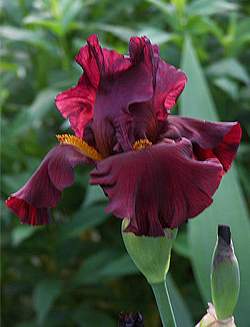 Ирис Respectable (Респектебл). Стандарты и фолы ярко-красные с оттенком махагон. Бородка оранжевая. Имеет красивую гофрировку на фолах и стандартах. Легкий в уходе, быстро размножается, обильно цветет. Отличный красный ирис для массивов.