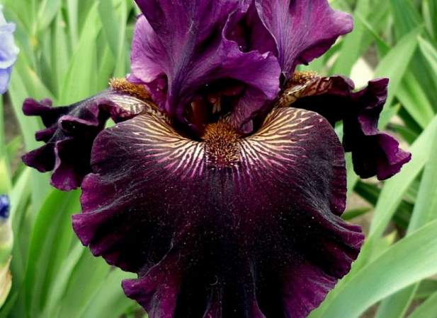 У бородатых ирисов толстое многолетнее корневище располагается горизонтально вровень с почвой, от него отходят длинные шнуровидные корни, образующие мочковатую корневую систему. Мечевидные листья, покрытые сизым восковым налетом, сложены веером. Вырастив такого метрового красавца вблизи дома или дорожки, вы подарите себе ни с чем несравнимое удовольствие наблюдать за рождением цветка, изменением его очертаний и оттенков по мере взросления.