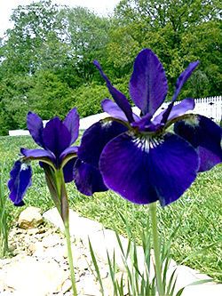 Ирис сибирский Caesar's Brother (Сизар'с Бразе). Старинный сорт сибирского ириса высотой 70-90 см. Ширина куста 50 см. Крупные синие, в основании каштановые с белыми лучиками, цветки появляются на длинных цветоносах в конце мая-июне. После цветения декоративен линейной зеленой листвой.