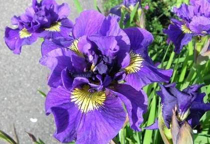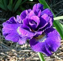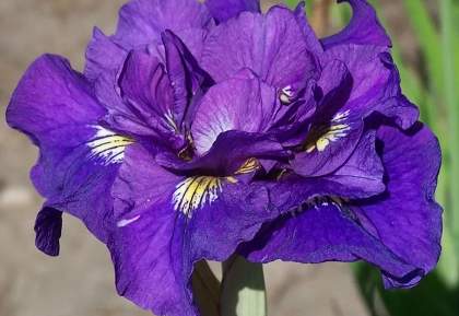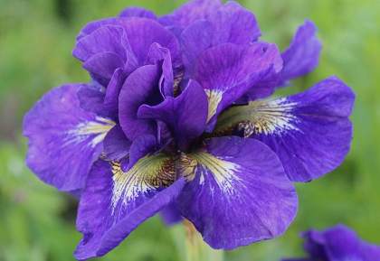 Ирис Double Standard (Дабл Стандарт). Цветок пышный, "кудрявый", крупный. У основания фиолетовых лепестков желто-белые сигналы.