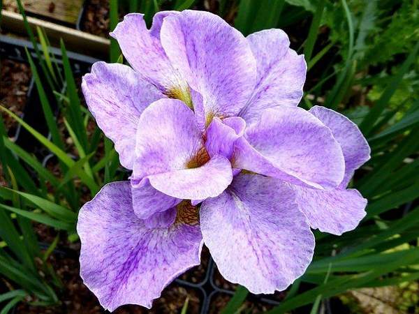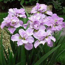 Ирис Kita-No-Seiza (Кита-но-Сейза). Великолепный сорт с красивейшими цветами! Цветы крупные, эффектной формы, светло-лавандово-бело-сиреневые, с множественными лиловыми штришками и коричнево-жёлтым центром, полумахровые, волнистые.