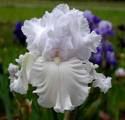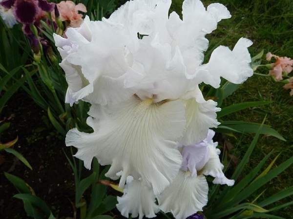 Ирис Skating Party (Скейтинг Пати). Очень крупный и красивый гофрированный кремово-белый цветок с розоватым отливом, на фолах небольшое жёлтое жилкование, бородка цвета слоновой кости. Высота 85 см. Срок цветения средне-поздний. Награды: HM 1985, AM 1989.