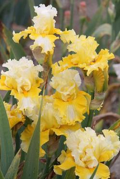 Ирис высокий бородатый Smart Money (Смарт Мани). Стандарты кремово-желтые, по центральной жилке ярко-желтые. фолы кремовые с желтыми плечиками и каймой. Бородка желтая. Очень крупный и сильно гофрированный. Высота 91 см. Имеет награды.