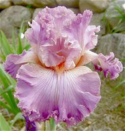 Ирис высокий бородатый Social Graces (Соушел Грейсез). Стандарты розовато-сиреневые. Фолы розовый бленд. Плечики кремовые. Бородка оранжевая с желтым кончиком. Срок цветения средне-поздний. Высота 97 см.