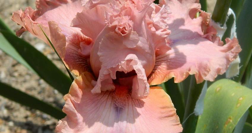У бородатых ирисов толстое многолетнее корневище располагается горизонтально вровень с почвой, от него отходят длинные шнуровидные корни, образующие мочковатую корневую систему. Мечевидные листья, покрытые сизым восковым налетом, сложены веером. Вырастив такого метрового красавца вблизи дома или дорожки, вы подарите себе ни с чем несравнимое удовольствие наблюдать за рождением цветка, изменением его очертаний и оттенков по мере взросления.