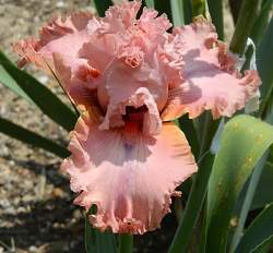 Ирис высокий бородатый Star Turn (Стар Тёрн). Окраска необыкновенная — клубнично-розовая. На плечиках медное напыление. Бородка мандариновая. Очень красивая форма цветка! Срок цветения средне-поздний. Высота 89 см.