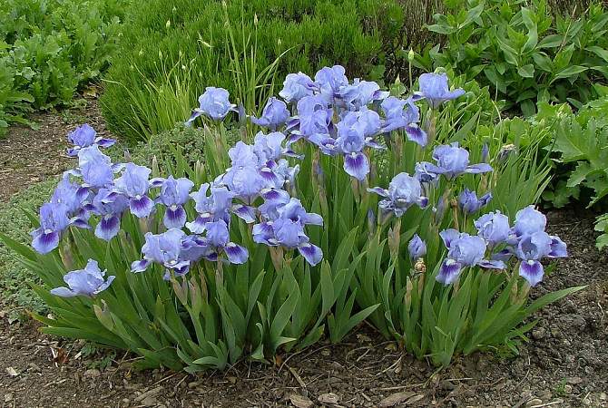 Требуется открытое солнечное и хорошо прогреваемое место. Высаживают с интервалом 30 см в защищенные от ветра участки. Корневище сажают практически вровень с поверхностью земли. Нельзя заглублять корневище ириса, растение не зацветет. При тесной посадке угнетаются. По окончании цветения удаляют цветоносы.